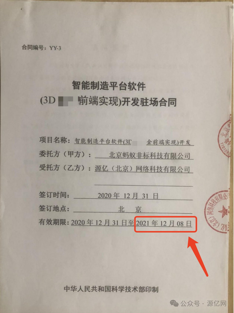 6.于2020年1月18日,北航以财务相关事由要求源亿公司和蚂蚁公司签订后续合同。即《智能制造平台软件(3Dx x x前端实现)开发驻场合同》。