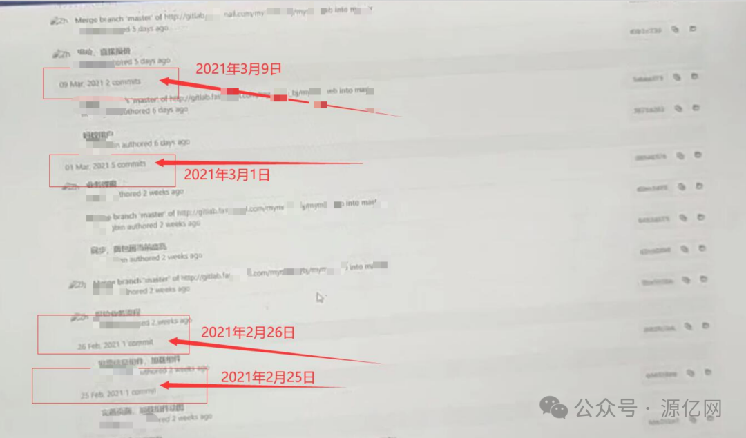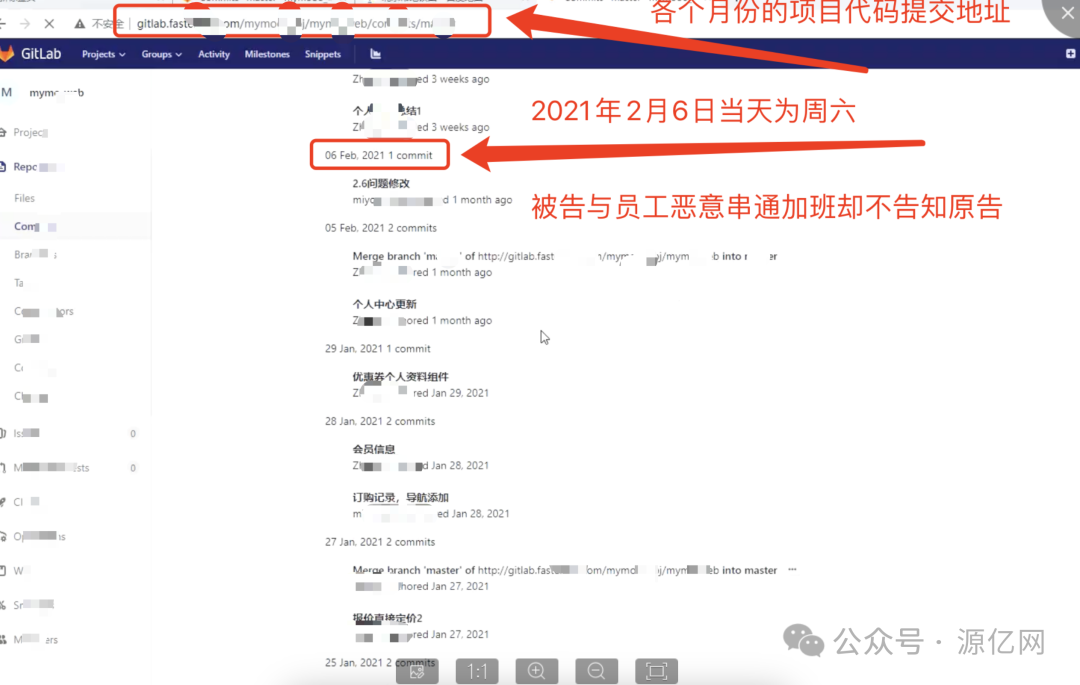 a.后经现场源亿网驻场员工代码提交工作记录查明,于2021年2月6日、2021年2月20日北航、蚂蚁公司与源亿公司派驻的员工加班却拒不告知源亿公司。