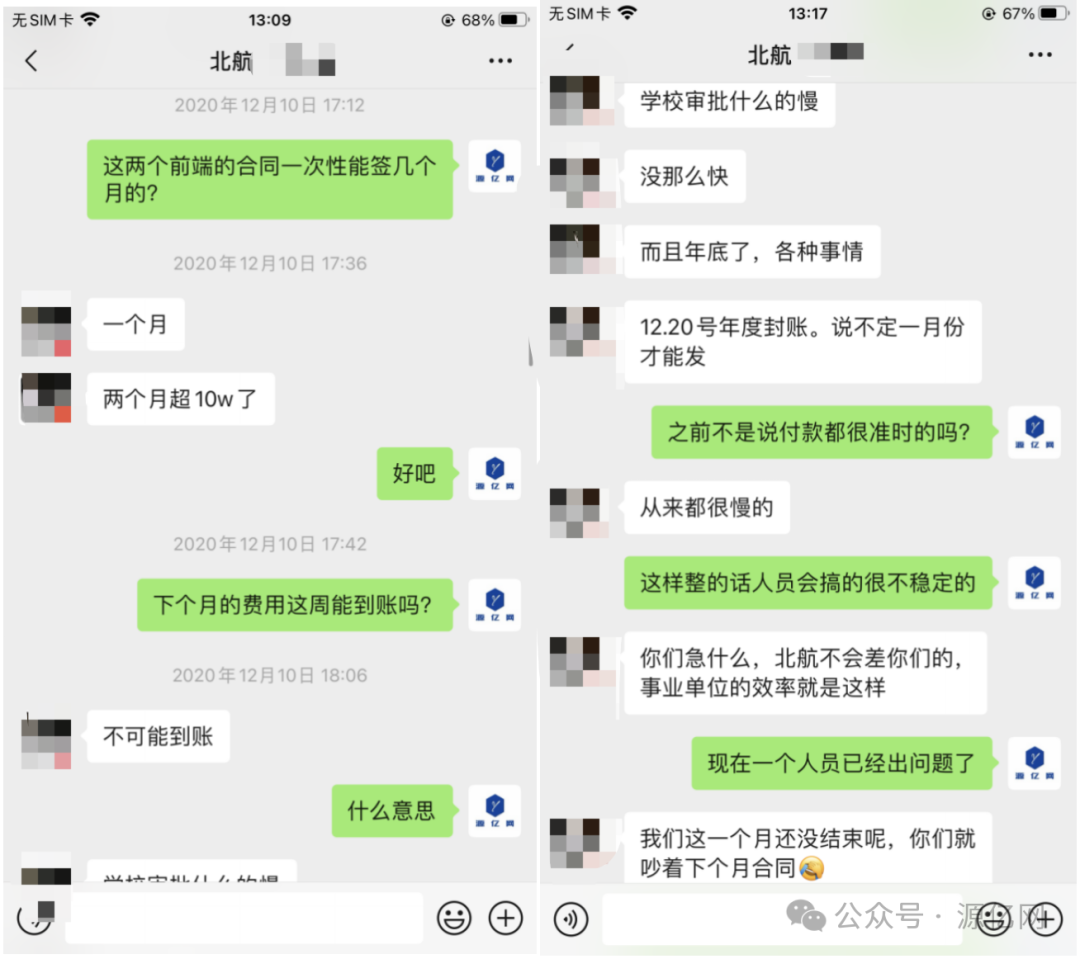 15.2020年12月10日北航微信说:“我们现在已经招了机械学院的学生来做这块”。北航以招了自己学生为由单方违约终止了后续一年的.net工程师合作。